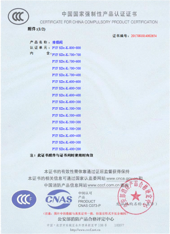 產(chǎn)品全通過國(guó)家消防檢測(cè)中心檢測(cè),獲得CCC證書